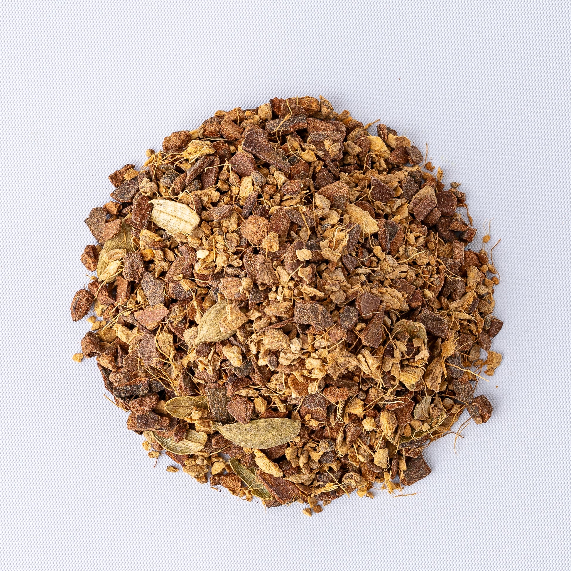 Ingredients: Ginger Root, Cinnamon Chips, Crushed Green Cardamom, and Chai Flavoring