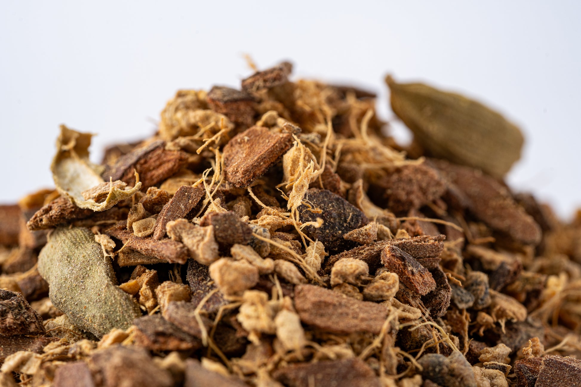 Our Chai spices herbal blend is the caffeine-free way to enjoy all the warm flavors of fall! Warm up with a steaming mug that marries the warm spiciness of cinnamon, cardamom, and cloves blended with the distinct bite of ginger.