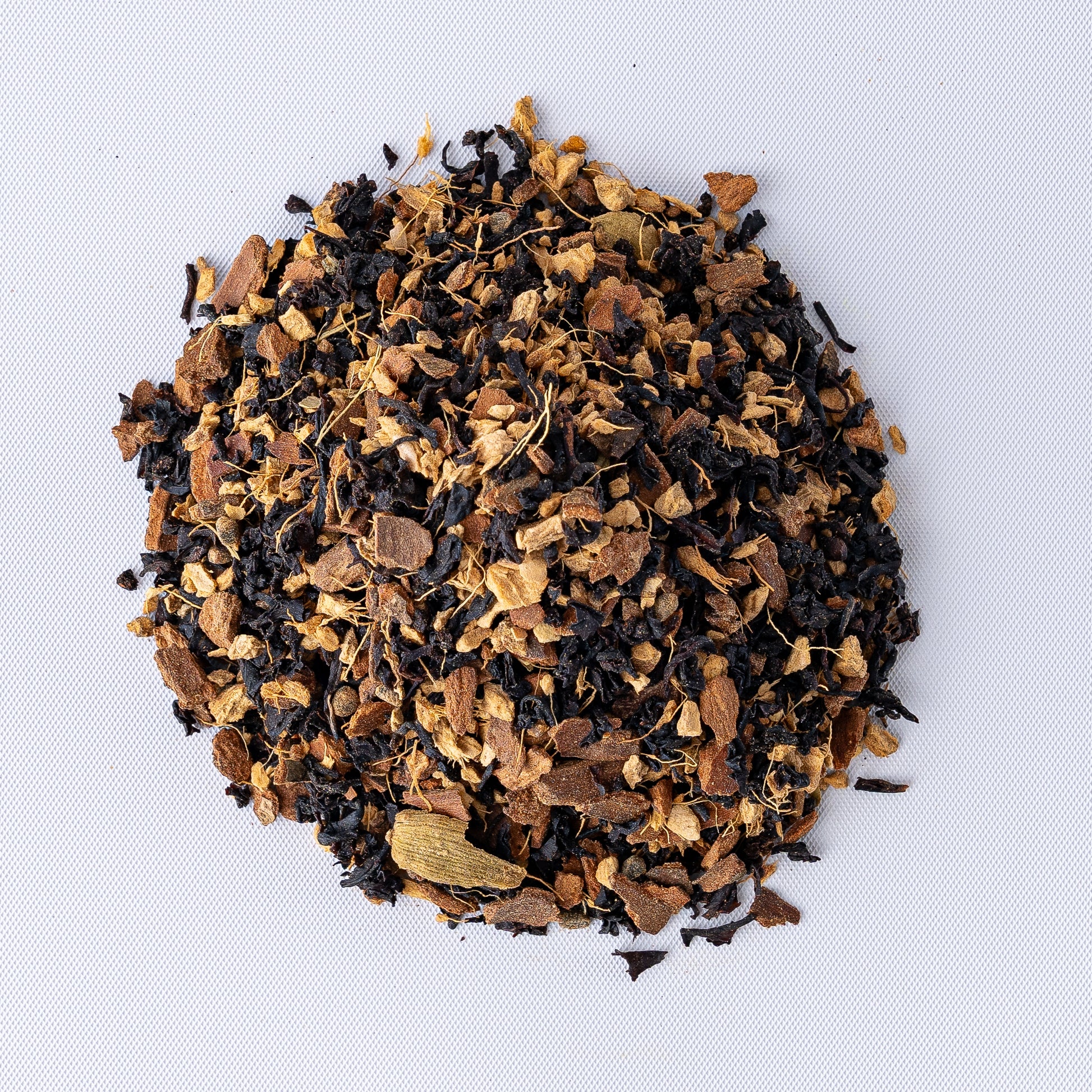 Ingredients: Ginger Root, Cinnamon Chips, Crushed Green Cardamom, and Chai Flavoring